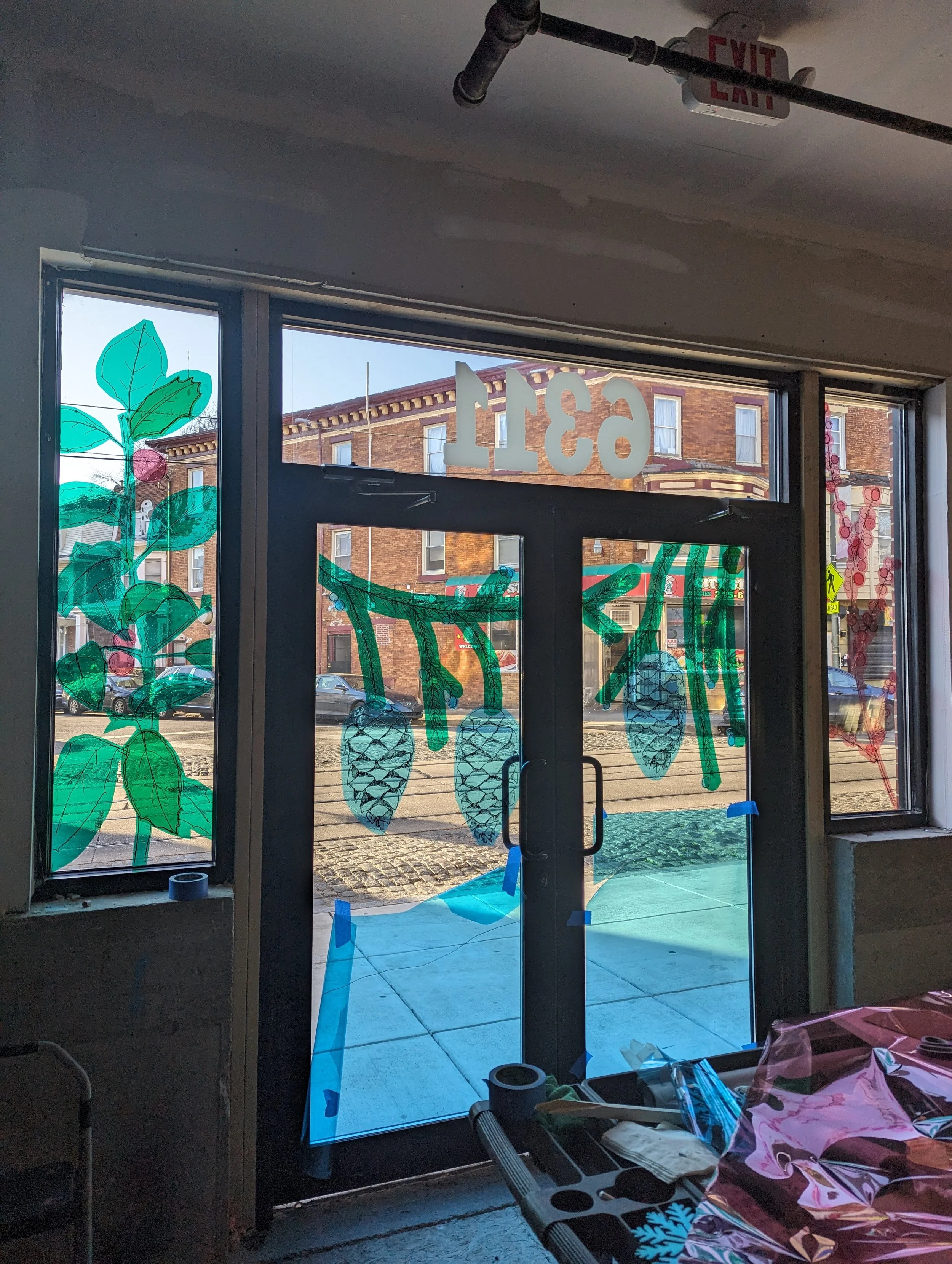 This was a very ambitious project for me, and the first storefront I had ever worked on. Iām hoping for more opportunities to stretch my abilities and practice working in a large scale. I am thankful to the building managers of 6311 Germantown Ave for their support and trust in my process, and especially thankful to Betsy of Airy Arts for the opportunity.